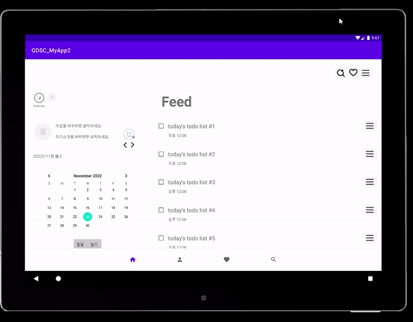 이번에는 바텀 내비게이션 바를 이용하여 프래그먼트로 작성한 화면을 FragmentManager을 사용하여 전환하였다.