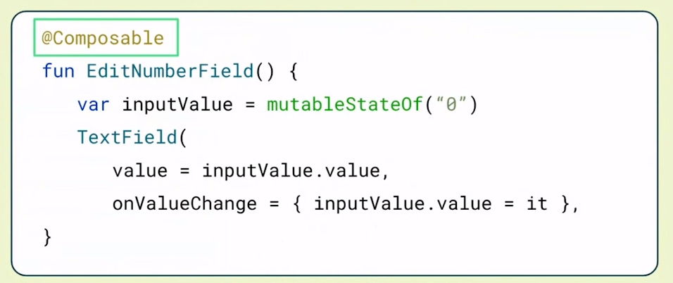 TextField의 inputValue의 value라는 속성을 읽고 각 Composable을 추적해 value가 변경되면 리컴포지션(재구성)을 시도함