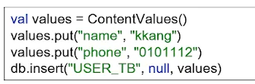 Map 객체처럼 키-값 형태로 데이터 여러 건을 ContentValues에 등록한다.