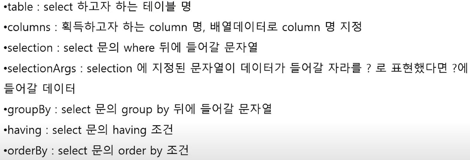 -> 개발자가 sql 문을 직접 만든다. - insert(), update(), delete(), query() 함수 사용