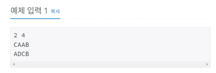 말은 상하좌우로 인접한 네 칸 중의 한 칸으로 이동할 수 있는데, 새로 이동한 칸에 적혀 있는 알파벳은 지금까지 지나온 모든 칸에 적혀 있는 알파벳과는 달라야 한다. 즉, 같은 알파벳이 적힌 칸을 두 번 지날 수 없다.