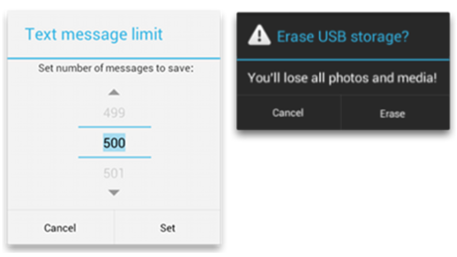방해하는 속성이 있기 때문에 이용자들은 하던 일을 멈추고 Dialog 처리를 해야 한다. 즉, 이용자가 다이얼로그를 처리하기 전까지는 아무것도 할 수 없으므로 다이얼로그 사용에 신중해야 한다.