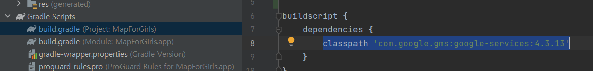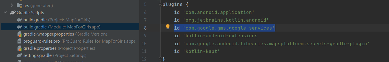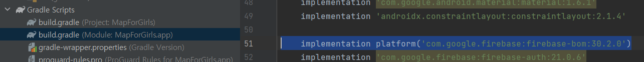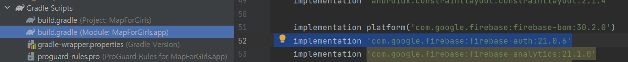 이후 모듈 gradle(앱 수준 build.gradle) 파일에 해당 코드를 추가해 준다.