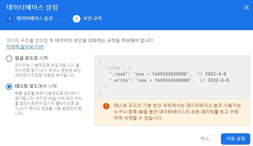 회원가입 구현을 위해서 firebase의 RealTime Database를 사용한다.