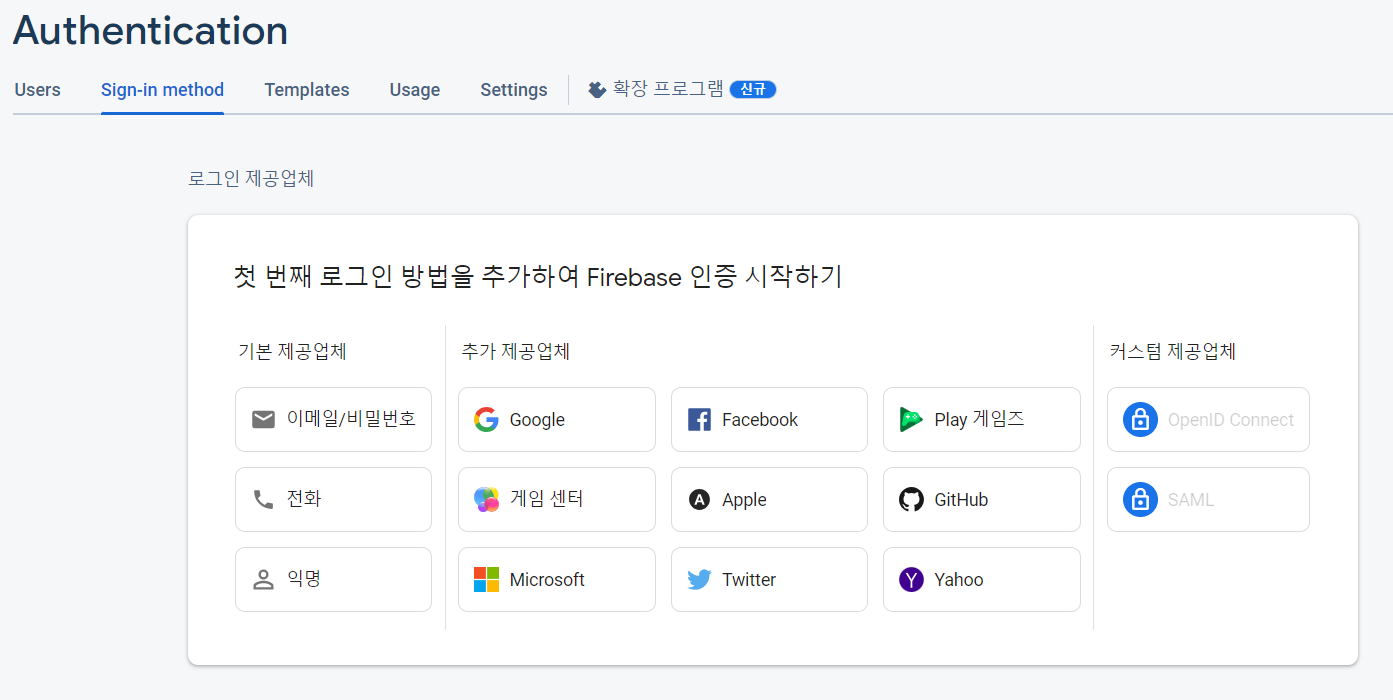 좌측의 Authentication에서 이메일/비밀번호를 사용 설정으로 바꾸어 준다.