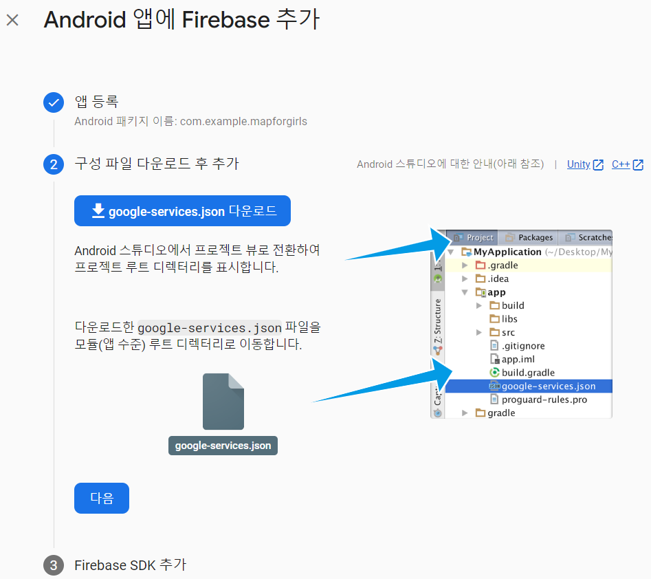 이후 json 파일을 다운로드해서 app에 넣어준다.