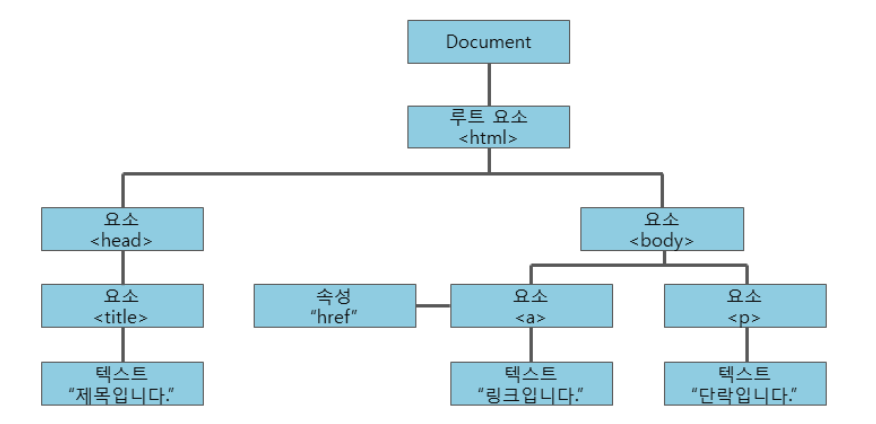 이 객체 모델은 문서 내의 모든 요소를 정의하고, 각각의 요소에 접근하는 방법을 제공다.