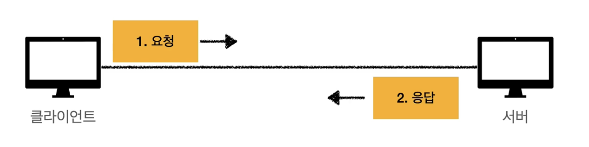 클라이언트 즉, 사용자가 브라우저를 통해서 어떠한 서비스를 url을 통하거나 다른 것을 통해서 요청(request)을 하면 서버에서는 해당 요청사항에 맞는 결과를 찾아서 사용자에게 응답(response)하는 형태로 동작한다.