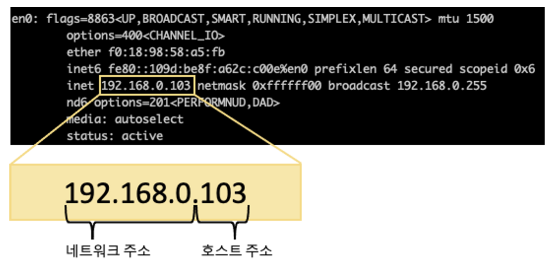 IP는 네트워크 주소와 호스트 주소로 구분되며 하나의 네트워크 상에 여러 호스트 주소가 있을 수 있다.
